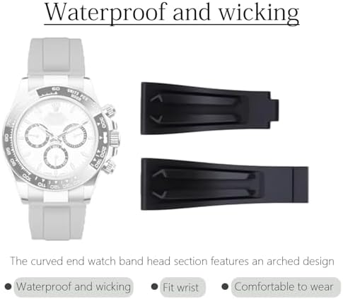 20mm Rubber Watch Band for Rolex Submariner, Daytona, Ghost, Yachtmaster & More – Waterproof, Unisex Design, No Clasp Included-Black