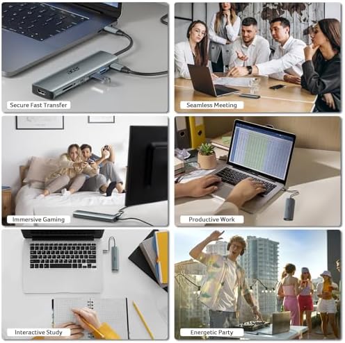USB C Hub, 7 in 1 Multi-Port Adapter for Laptop, 4K, HDMI Splitter with 2 USB A 3.1 & Type-C to HDMI Data Port, PD 100W Charging, SD Card Reader for Computer, Desktop, Space Grey