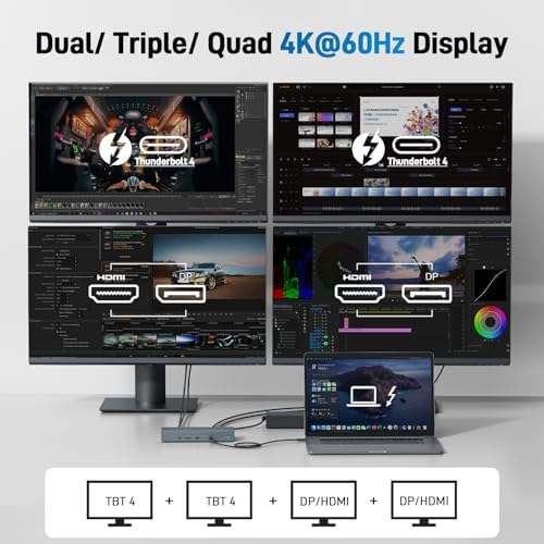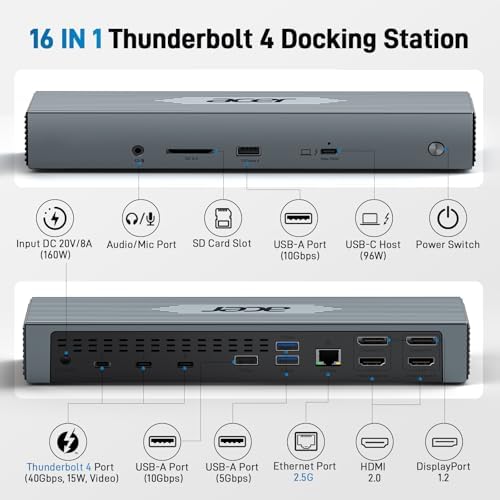 Thunderbolt 4 Dock, 16 in 1 DisplayLink Docking Station 4 Monitor, 3×TB4+2×HDMI+2×DP, Up to 8K & 40Gbps, 160W Power, 2.5G Ethernet, SD4.0, USB C Dock for MacBook Pro/Max, Dell, Acer, HP etc