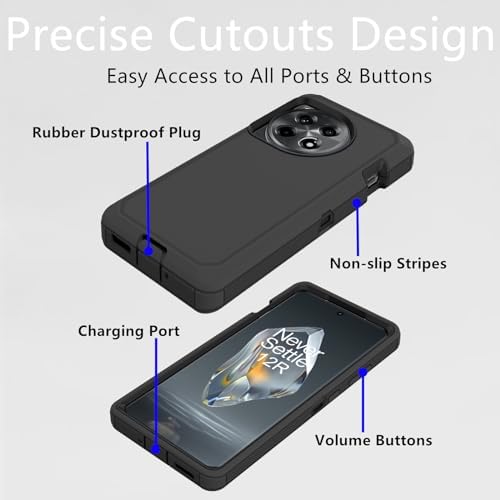 for Oneplus 12R Case, Heavy Duty Defender Case Dustproof Shockproof Protection 3 in 1 Rugged Cover for Oneplus 12R (2024) - Black